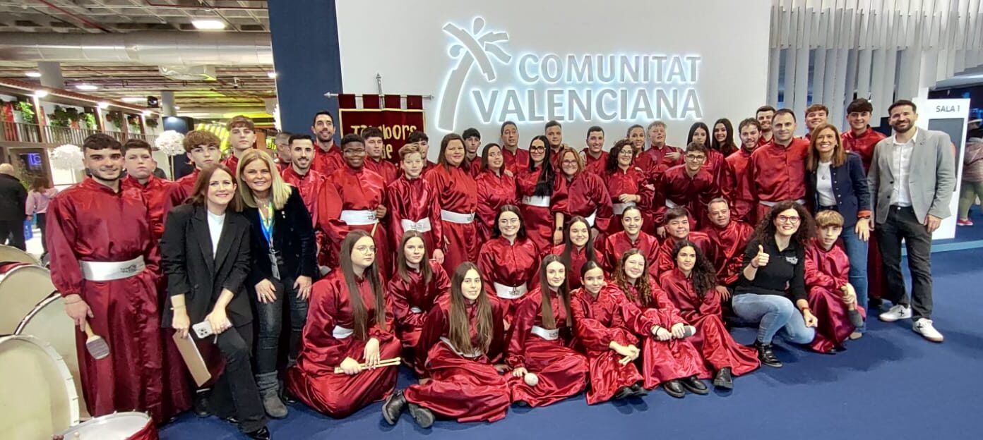 Tambors de Passió deslumbró este sábado a los asistentes de la Feria Internacional de Turismo (Fitur) en Madrid con una vibrante presentación de su tradicional Jueves Santo, además de otros toques distinguidos del grupo. La cita, respaldada por el Ayuntamiento de Almassora, llenó la plaza mayor del stand de la Comunitat Valenciana de energía, tradición y un retumbar inolvidable de tambores y bombos con una destacada participación de más de 50 músicos.