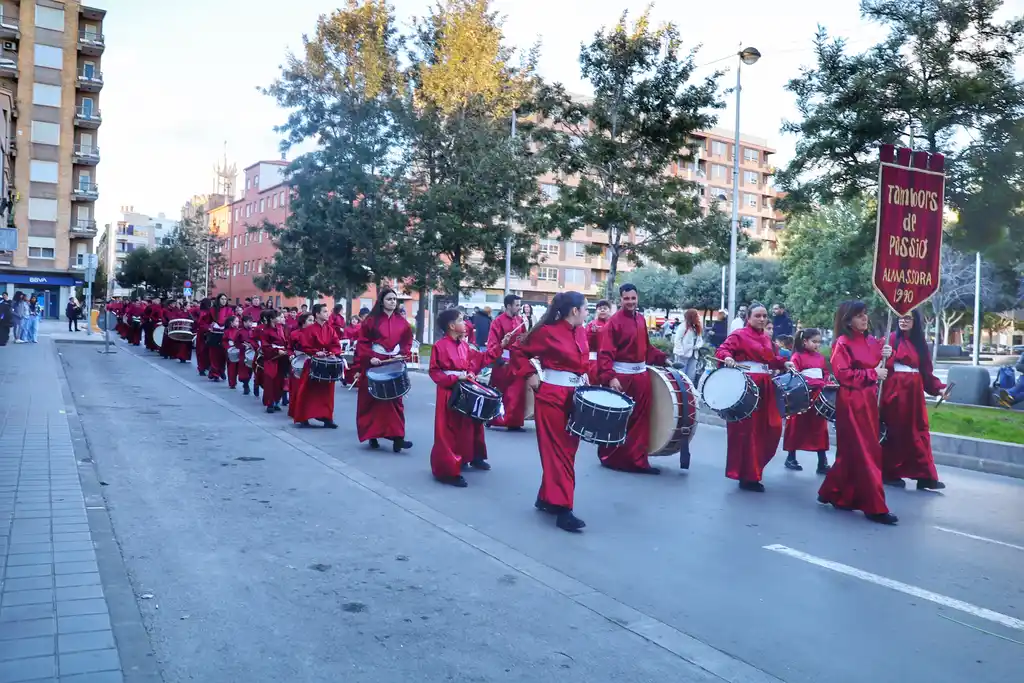 Por la tarde, y tras la comida de hermandad, tuvo lugar el desfile de los grupos participantes desde la plaza Pere Cornell hasta la plaza Mayor. Tambors de Passió presentó una formación de récord con más de 120 músicos en sus filas. El espectáculo estuvo garantizado de este modo y sirvió como colofón musical a una jornada espectacular en todos los sentidos. El acto finalizó con una entrega de detalles a los grupos participantes.